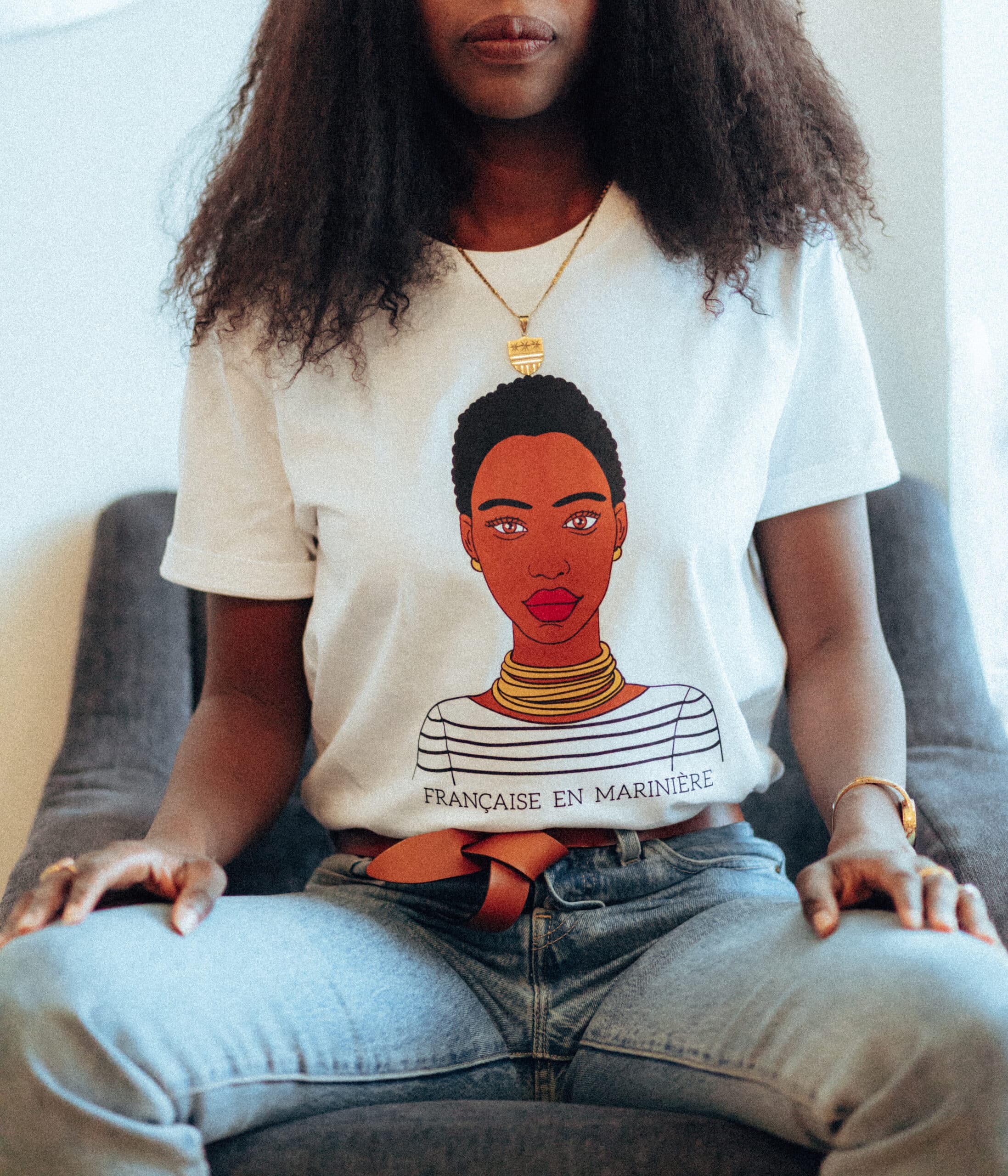 Rencontrez Aya, une femme belle et intelligente. C’est même une des plus belles femmes de Paris. Notre française en marinière a tout pour plaire : un port de reine et une couleur ébène qui nous vient de loin.